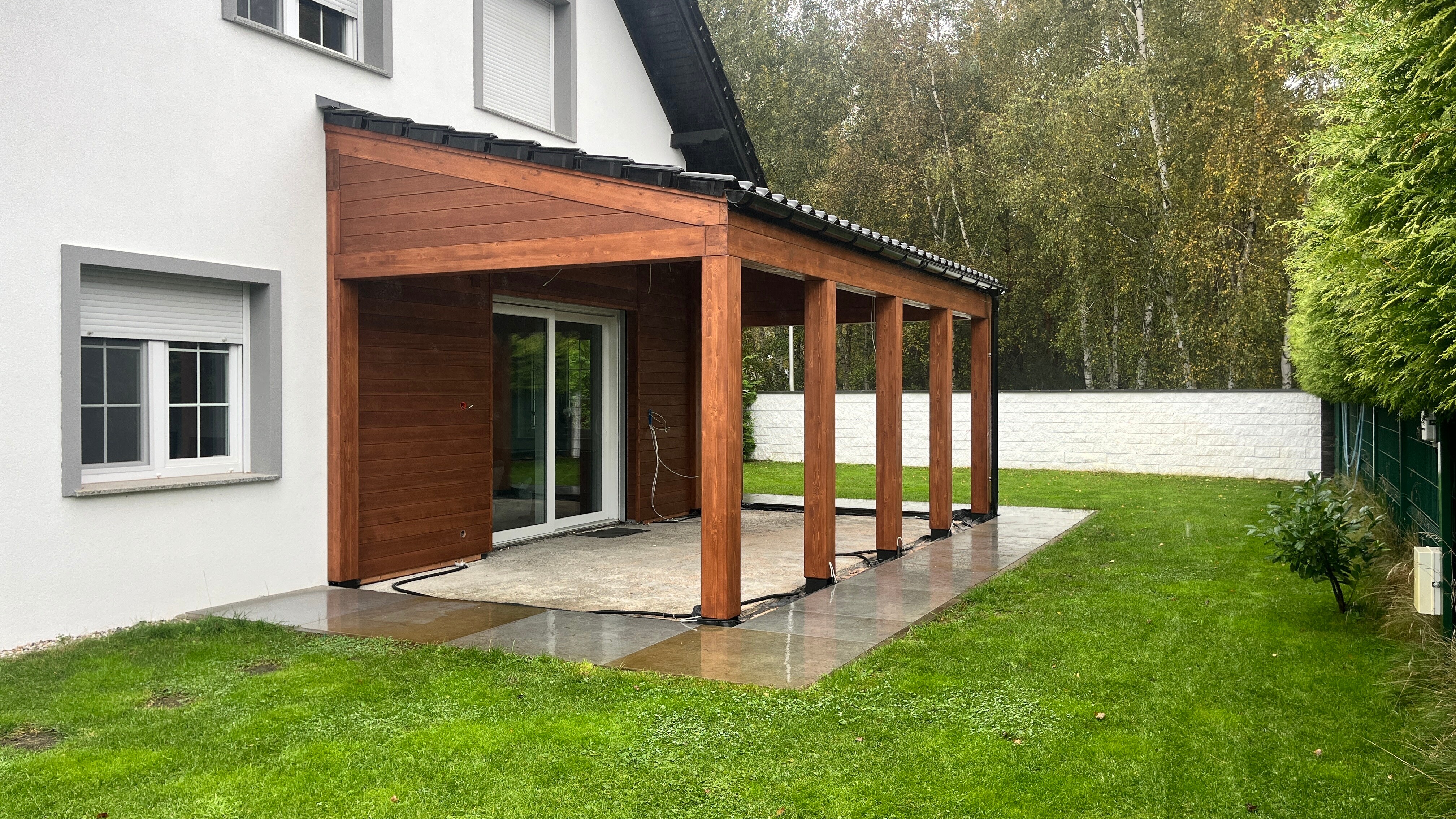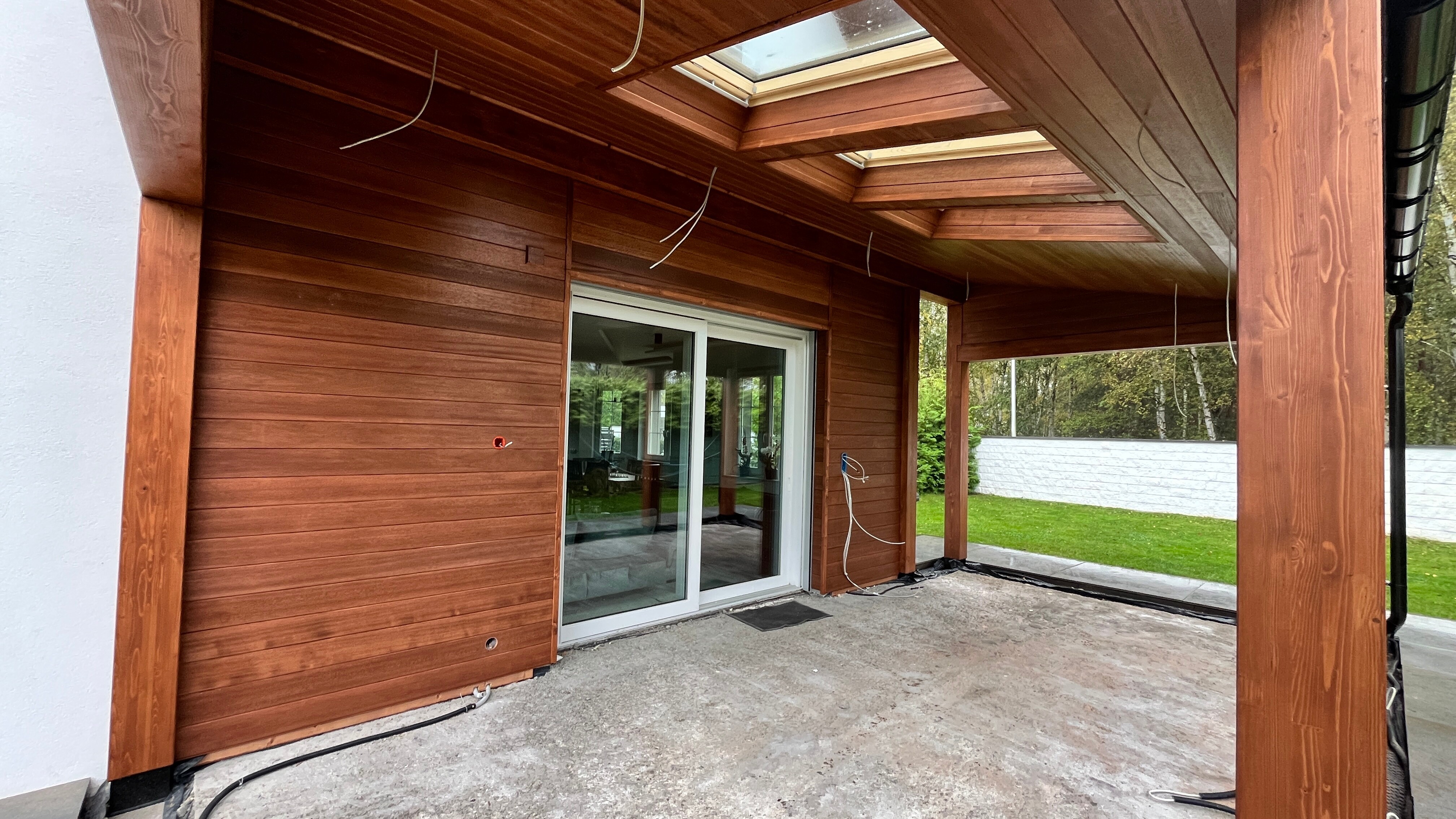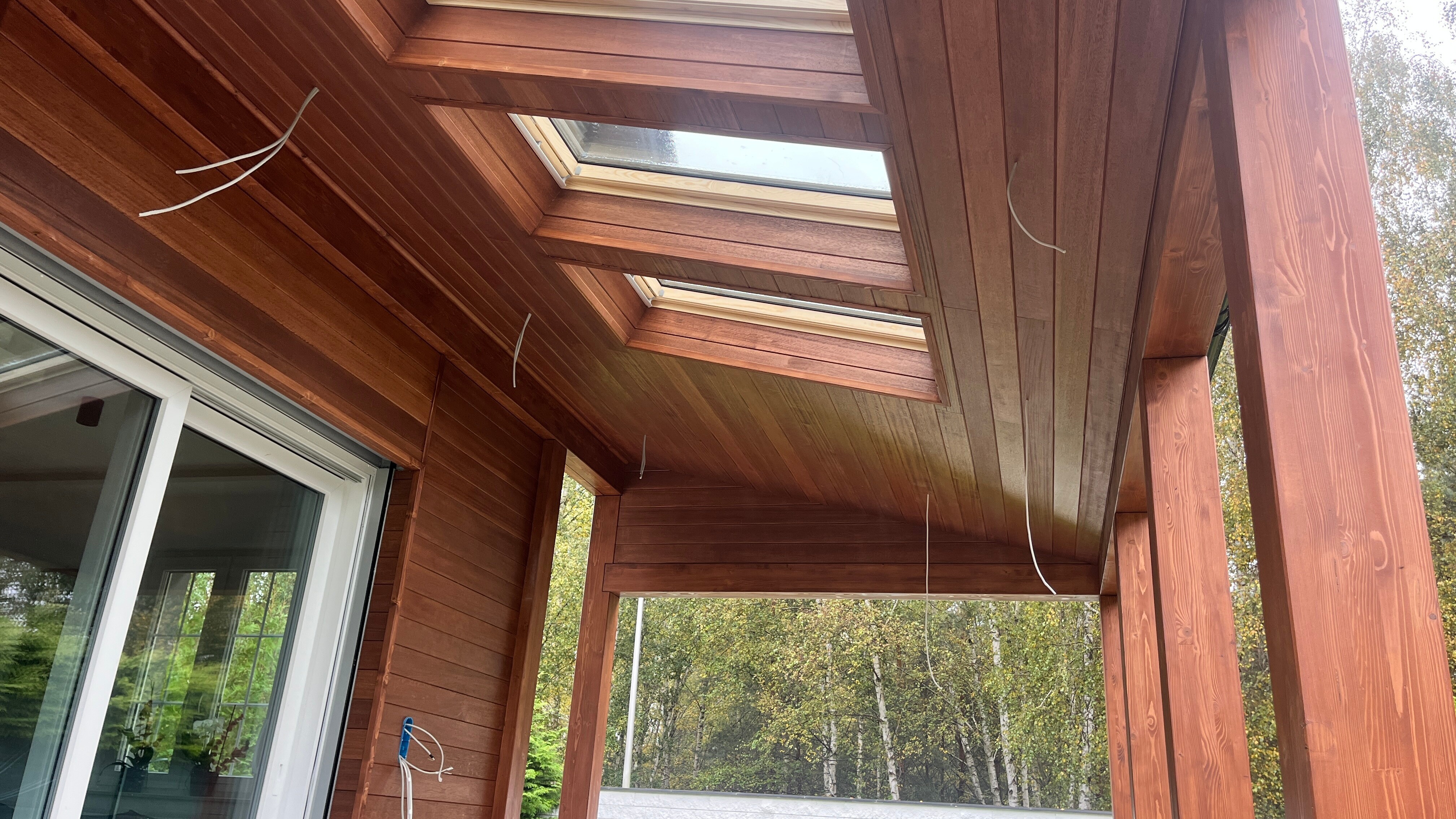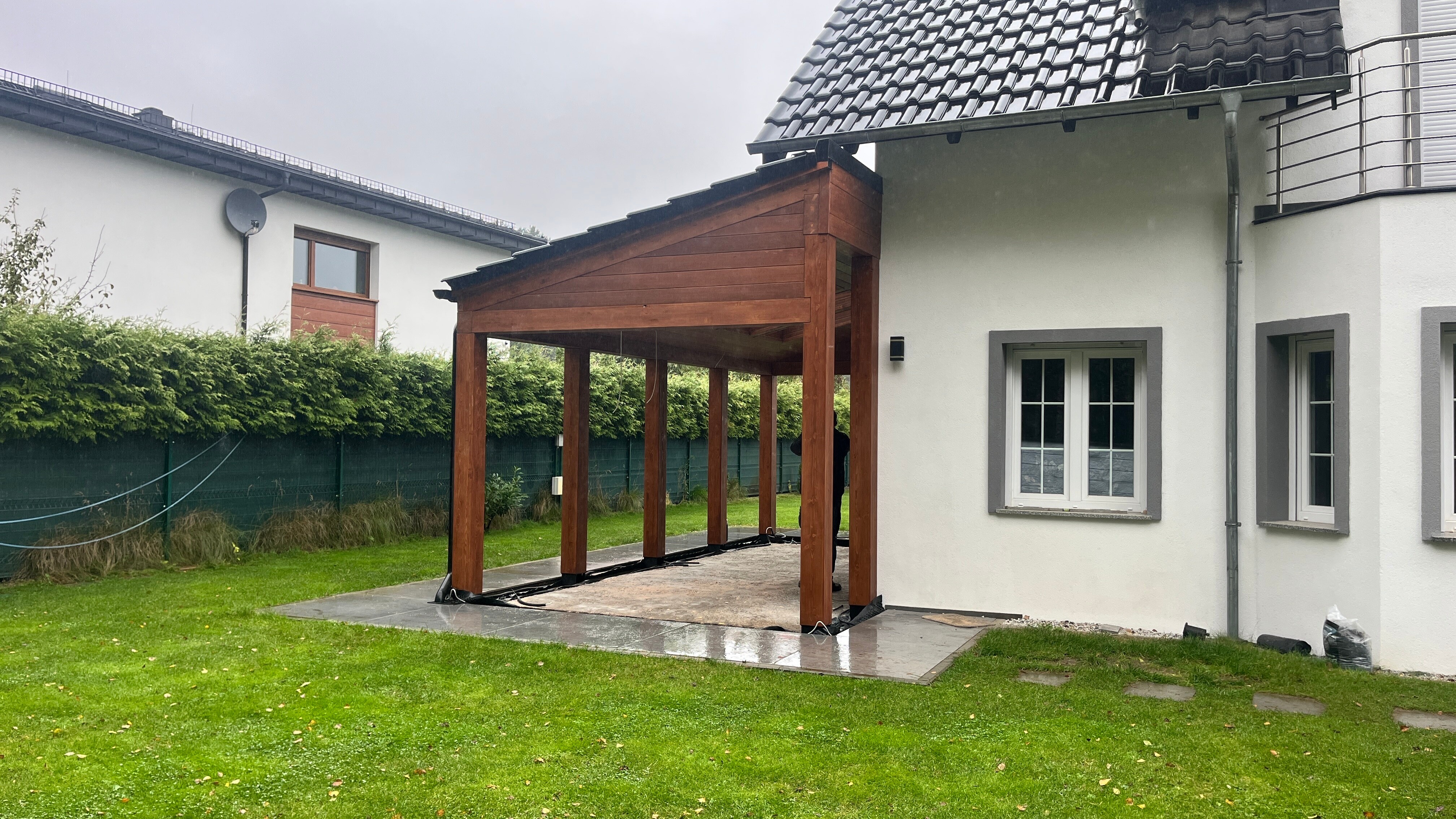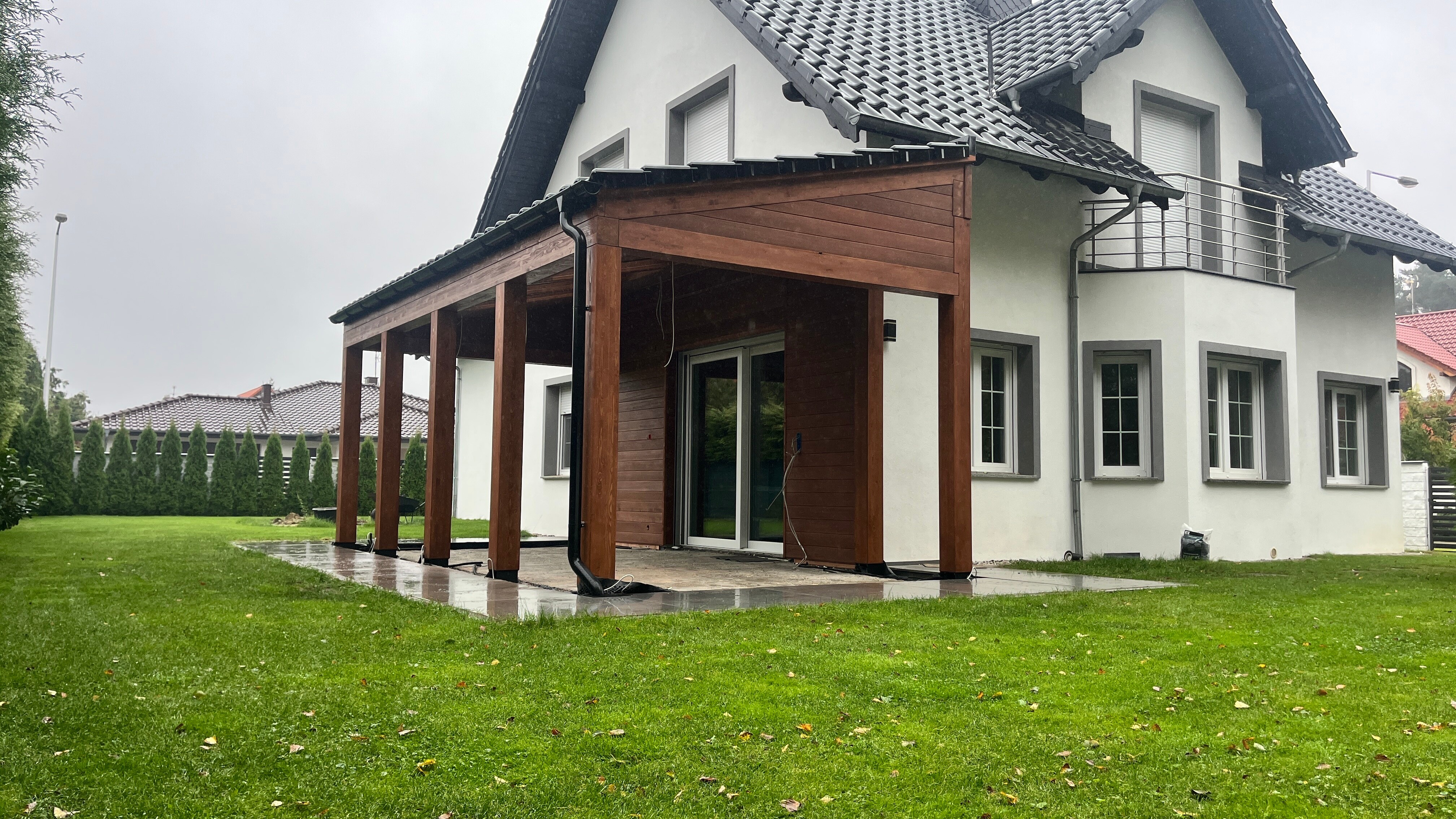 Do realizacji tego projektu użyliśmy drewna świerkowego BSH, które cechuje się wyjątkowymi właściwościami technicznymi. BSH to drewno suszone komorowo, a następnie klejone, co pozwala na redukcję naturalnych pęknięć oraz skręceń materiału, które mogą występować w tradycyjnych elementach drewnianych. Dzięki temu konstrukcja zyskuje na trwałości i estetyce, a także zachowuje swoją stabilność przez długi czas. Proces klejenia zwiększa również odporność na odkształcenia, co sprawia, że materiał ten jest idealny do budowy konstrukcji wymagających precyzji i wysokiej jakości wykończenia.
